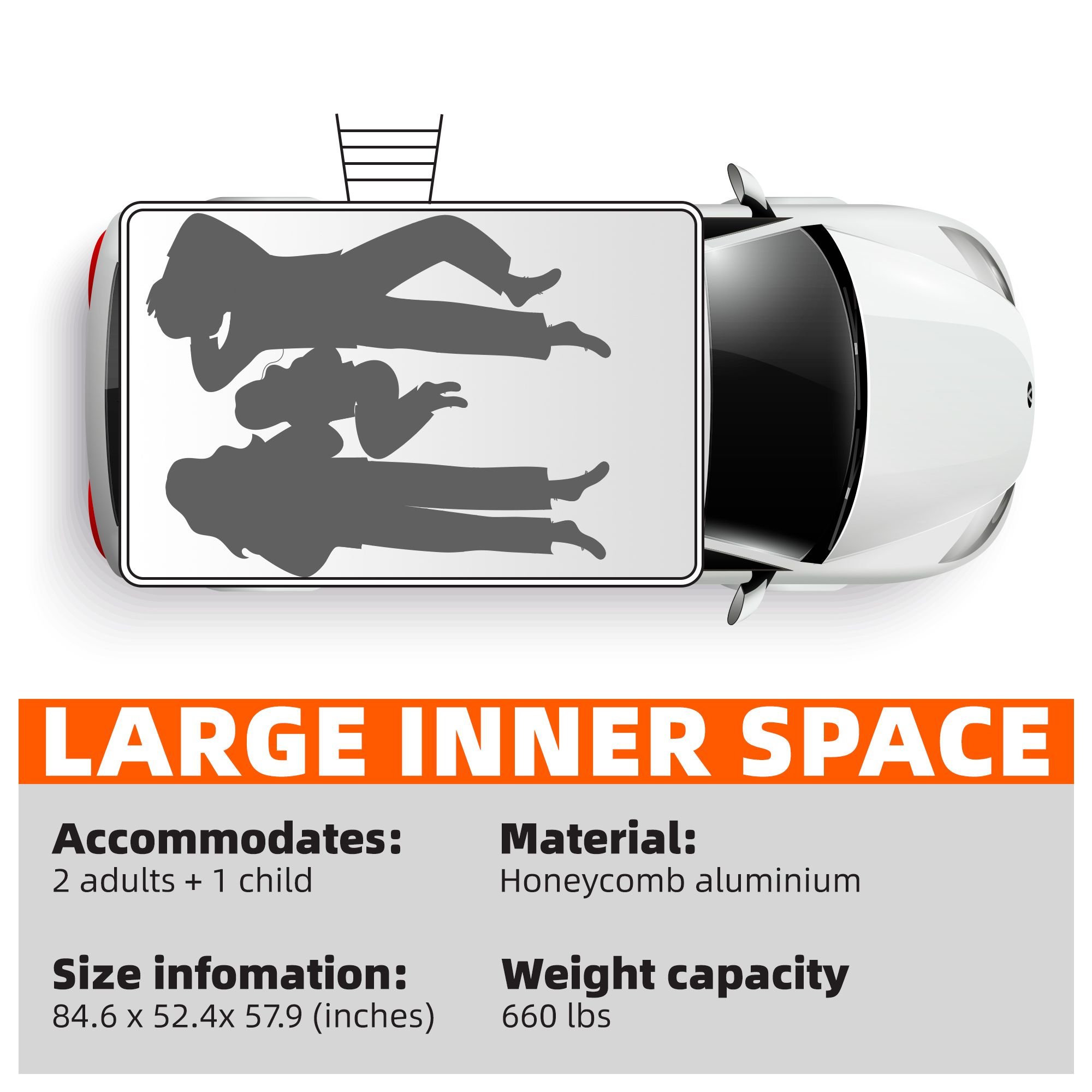 4. Tents include a 7.6 FT ladder, 2 detachable pockets and Interior LED strip. And ceiling storage net and side wall storage net for stowing keys, wallets, headlamps, clothing, or anything else you need to quickly stash inside the tent.