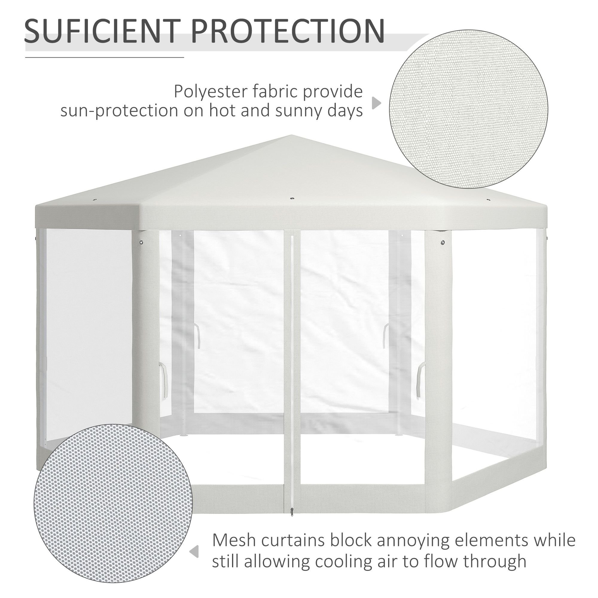 Outsunny 13' x 11' Sun Shelter, Hexagon with Mesh Screen Walls, Cream White for Outdoor Parties