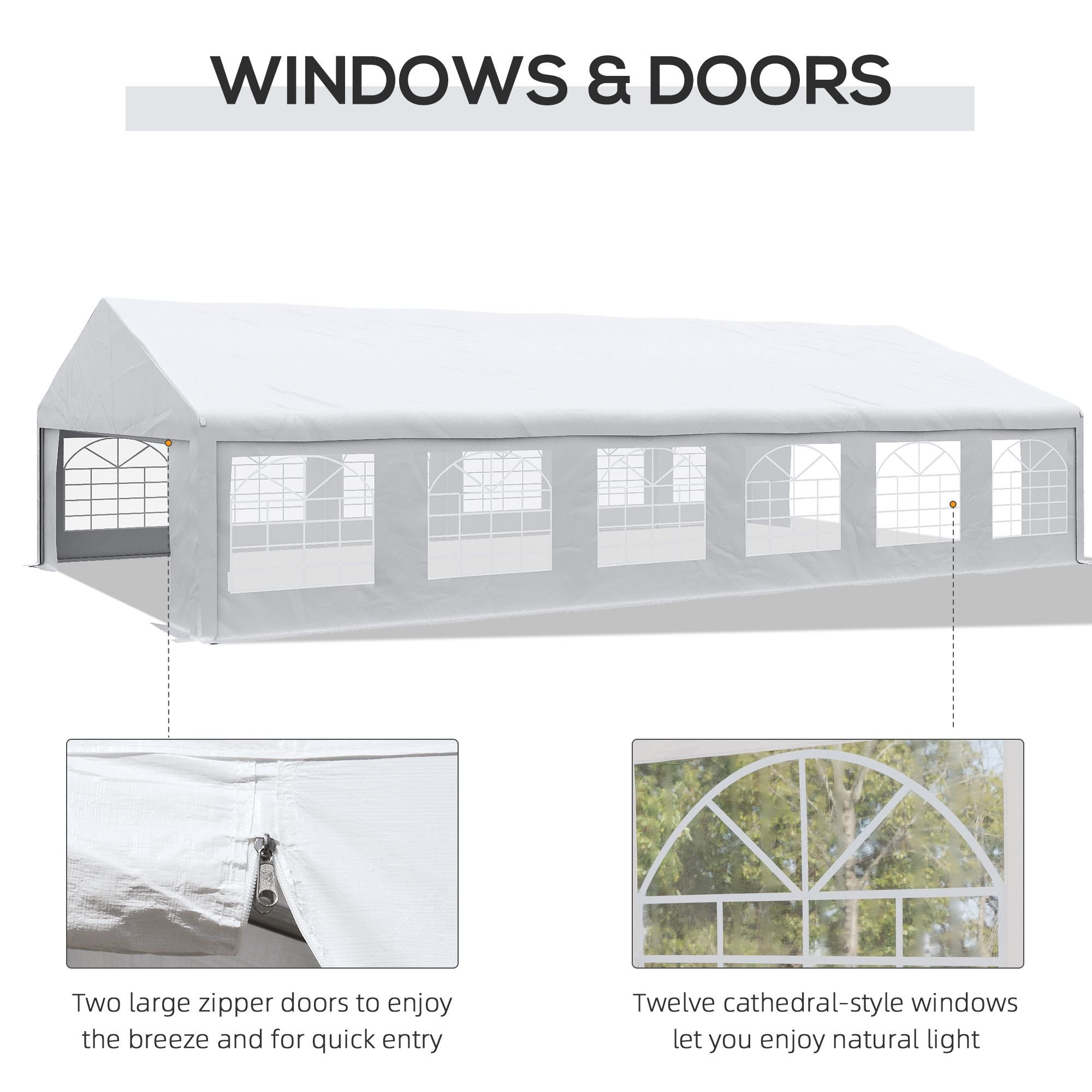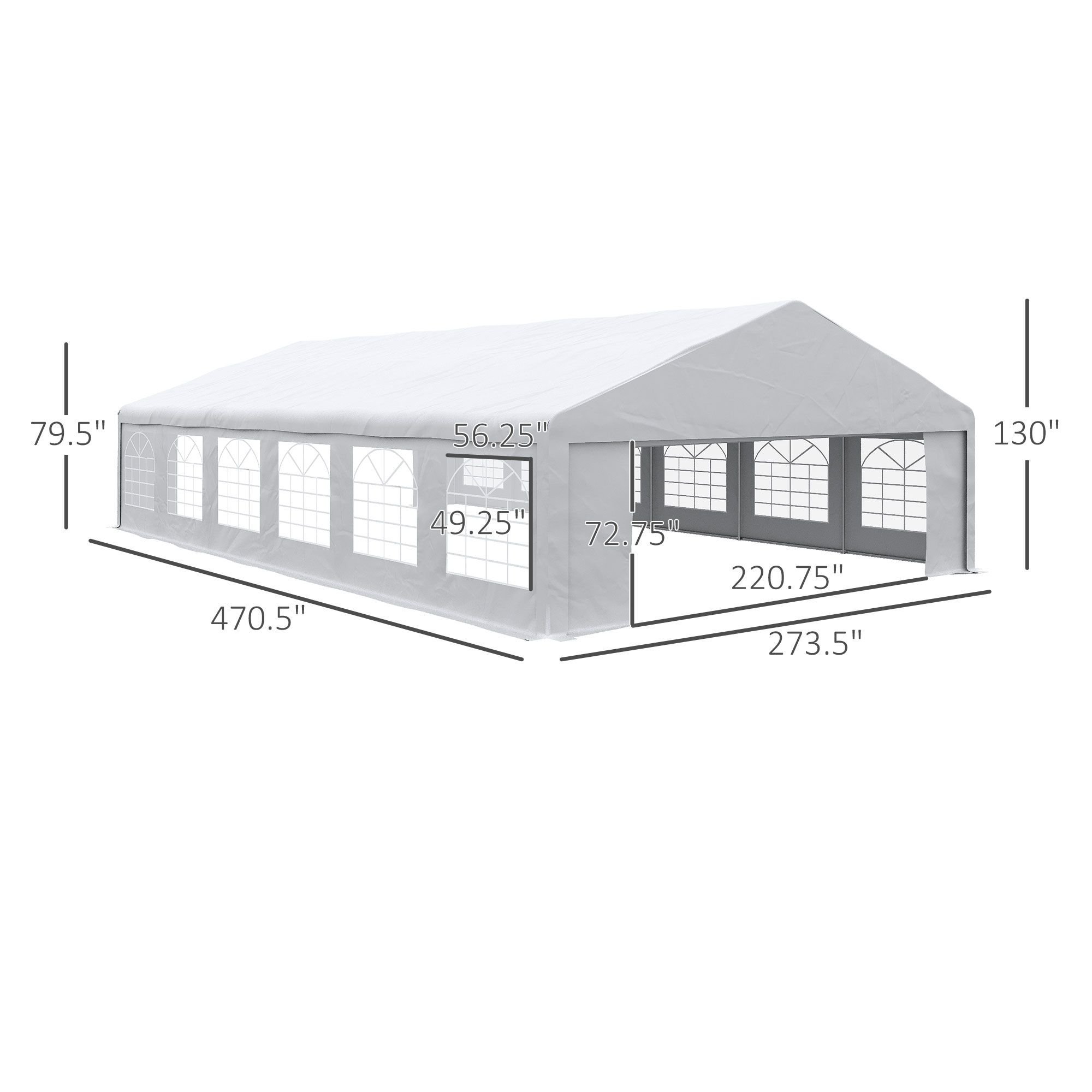 Outsunny's 23' x 39' carport and party tent can protect your project car and transform any outdoor area into a unique event space. Excellent for wedding receptions, graduation parties, or extra-large barbeques, it offers twelve stylish cathedral-esque windows. Excellent for small-to-medium cars, boats, furniture, and tools, it stops sun damage and sunburns alike. Made of a galvanized steel frame selected to withstand water and warping, Outsunny's canopy tent provides portable protection.