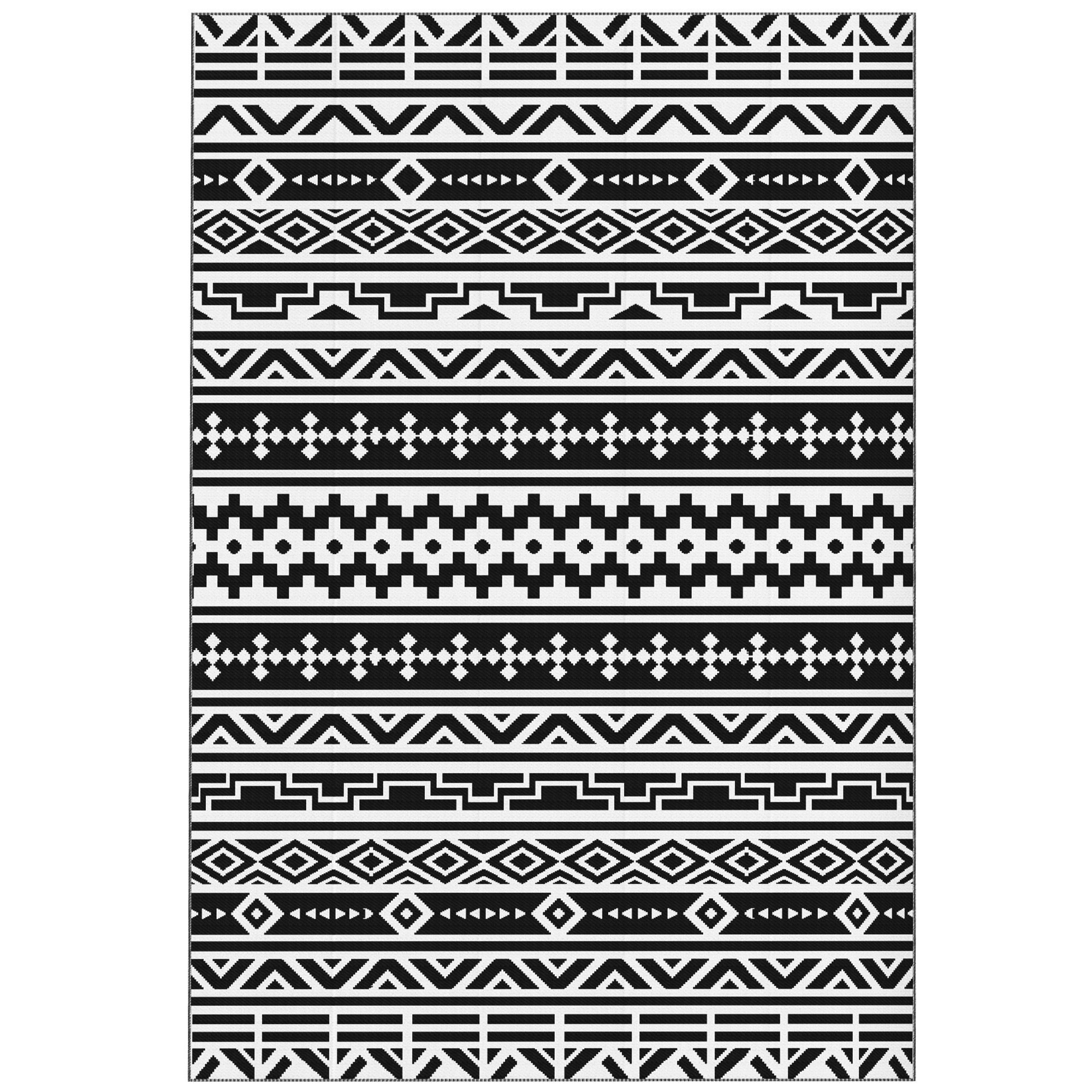Home > Outsunny Reversible Outdoor Rug, Waterproof Plastic Straw with Carry Bag, 6' x 9', Black & White Geometric Wall